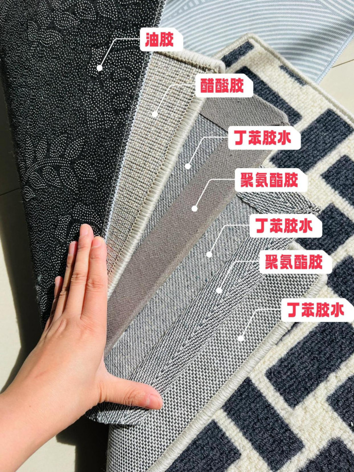 所以,选地毯时不能光看颜值,一定要翻开底部瞧瞧,要是底部是橡胶、塑料的,建议直接扔了。