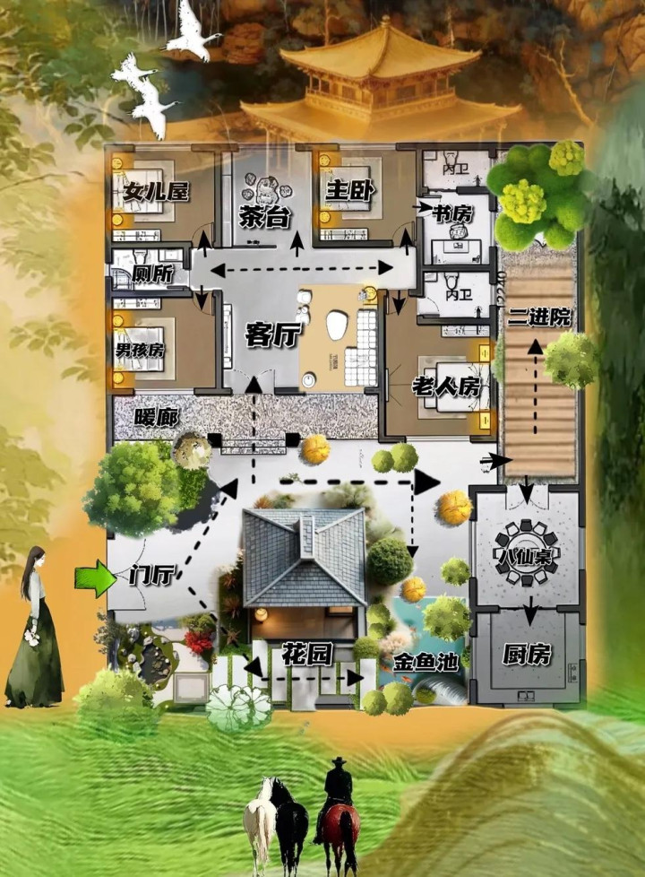 院子很重要,动线跟不上,客厅不露脸,老是按老辈子的生活习惯,整出一亩大宅子,这个格局你喜不喜欢?